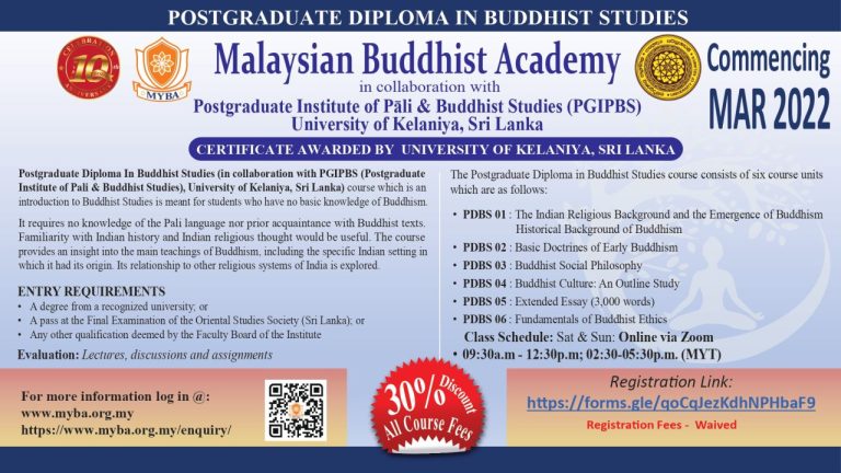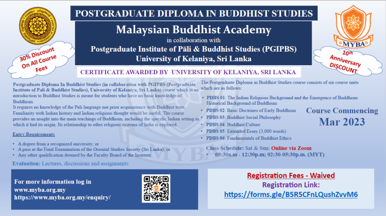 Postgraduate Diploma in Buddhist Studies (PDBS2023) – New Intake Commencing March 2023 – PGIPBS, University of Kelaniya, Sri Lanka Read More » November 12, 2022