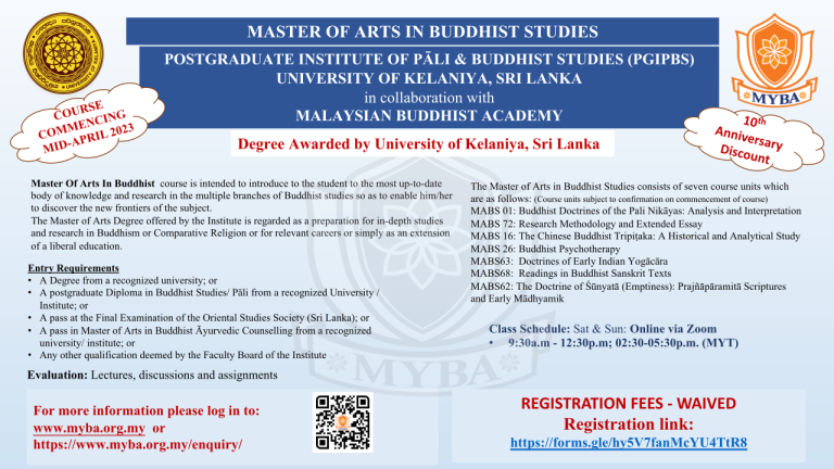 Master of Arts in Buddhist Studies (MABS2023) – New Intake Commencing Mid-April 2023 – PGIPBS, University of Kelaniya, Sri Lanka Read More » November 12, 2022